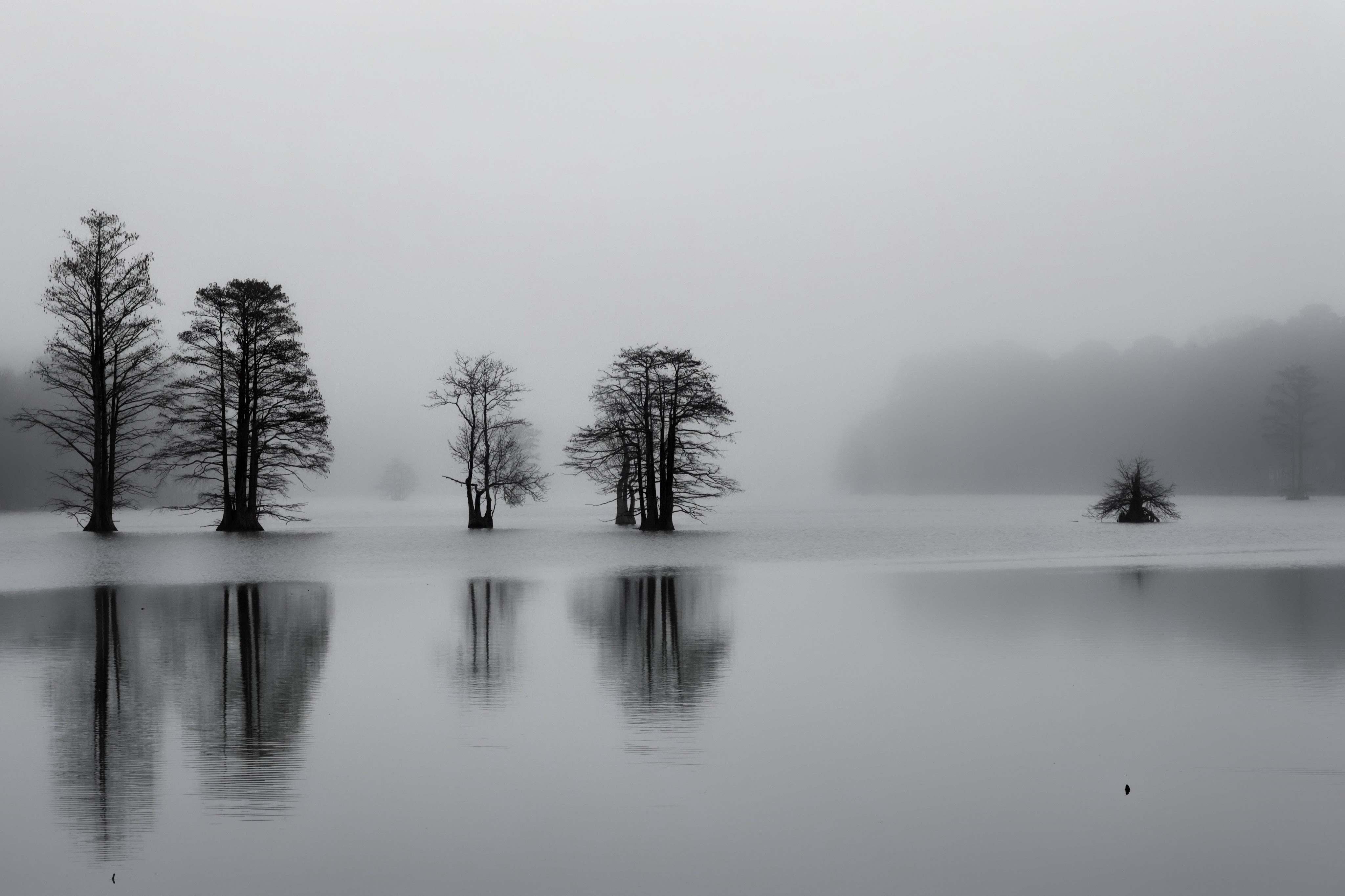 Earlier this week, my spouse and I had a few days to go birding around Virginia Beach. Tuesday began with dense fog. We visited a location that was new to us: Stumpy Lake Natural Area. Presumably, the lake was named because of the presence of bald cypress trees and their associated “knees”. The combination of fog and trees growing in the middle of the lake made for a very compelling scene.